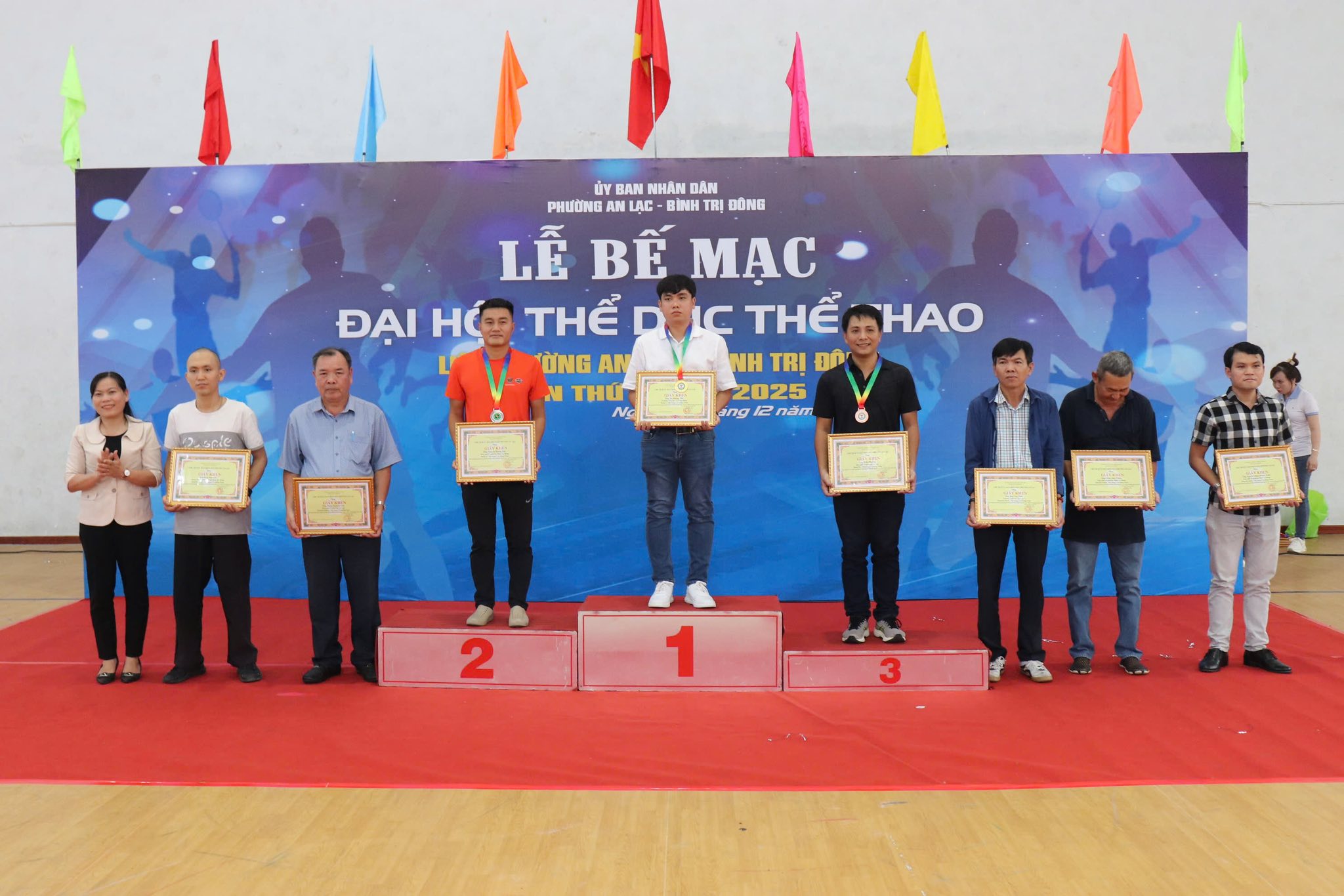 Bên cạnh đó, đồng chí Nguyễn Ngọc Toàn trân trọng ghi nhận, biểu dương sự cố gắng nỗ lực của các vận động viên trong thi đấu, đồng thời gửi lời cám ơn chân thành đến lãnh đạo phường An Lạc luôn tạo mọi điều kiện thuận lợi để Đại hội thành công tốt đẹp, chúc các vận động viên luôn tiếp tục giữ lửa đam mê và đạt thêm nhiều thành tích hơn nữa trong tương lai./.