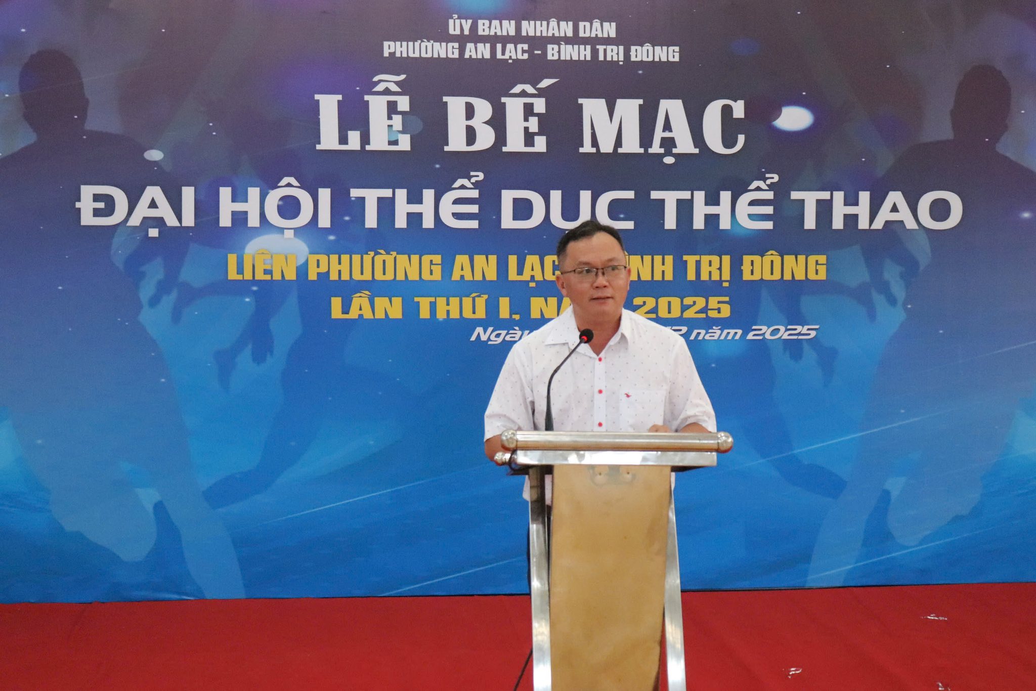 Phát biểu tại lễ bế mạc, đồng chí Nguyễn Ngọc Toàn Đảng ủy viên, Phó Chủ tịch UBND phường Bình Trị Đông gửi lời chúc mừng đến các vận động viên đã hoàn thành xuất sắc các nội dung thi đấu tại đại hội và để lại nhiều ấn tượng tốt đẹp. Đại hội lần này có ý nghĩa quan trọng, được tổ chức nhằm triển khai, thực hiện chủ trương của Đảng và Nhà nước trong việc phát triển sự nghiệp thể dục thể thao và vận động toàn dân tham gia rèn luyện sức khỏe, đây cũng là dịp tạo ra sân chơi lành mạnh, góp phần nâng cao sức khỏe, đời sống tinh thần, tăng cường mối quan hệ đoàn kết nhân dân giữa 02 địa phương.