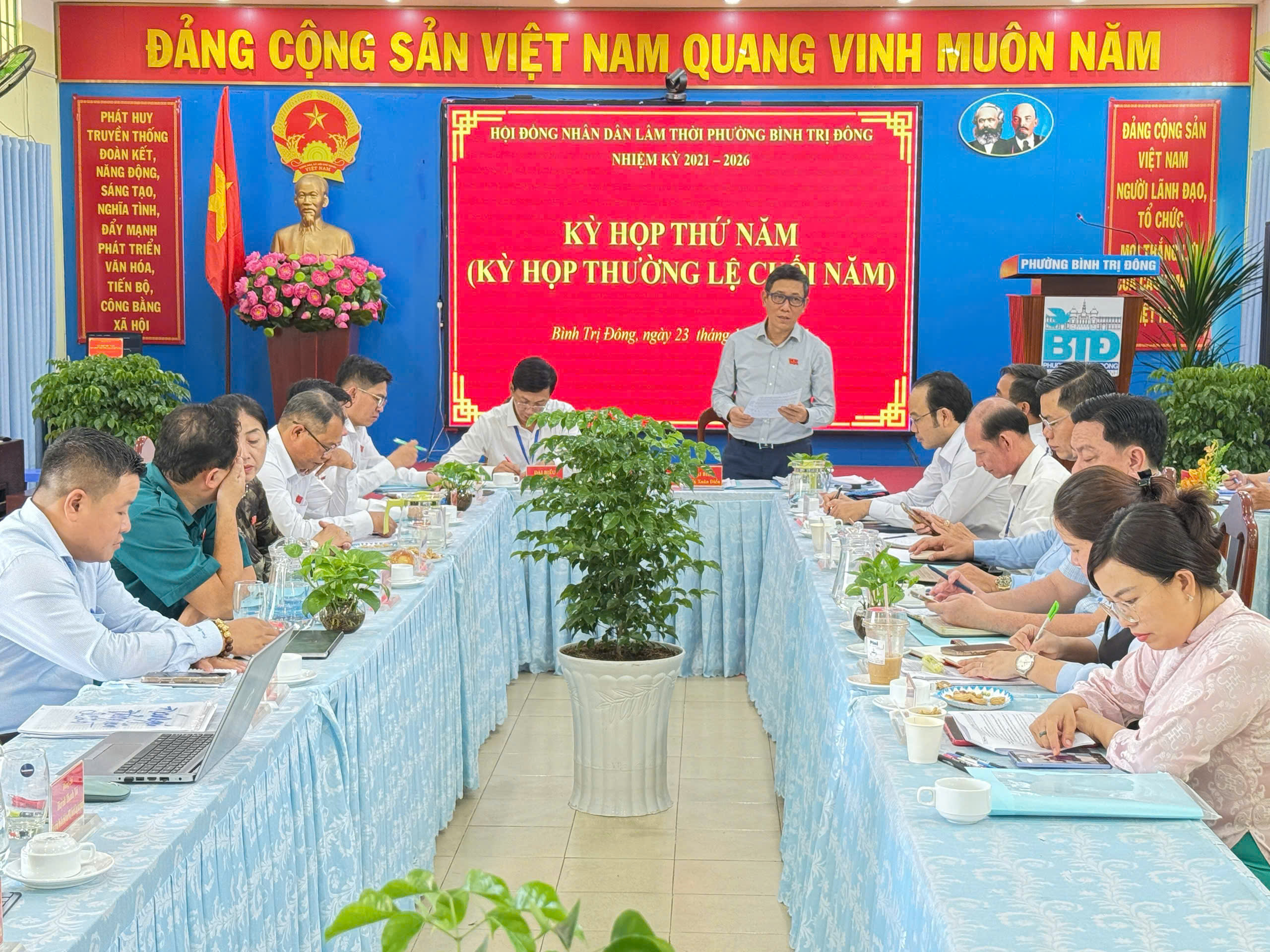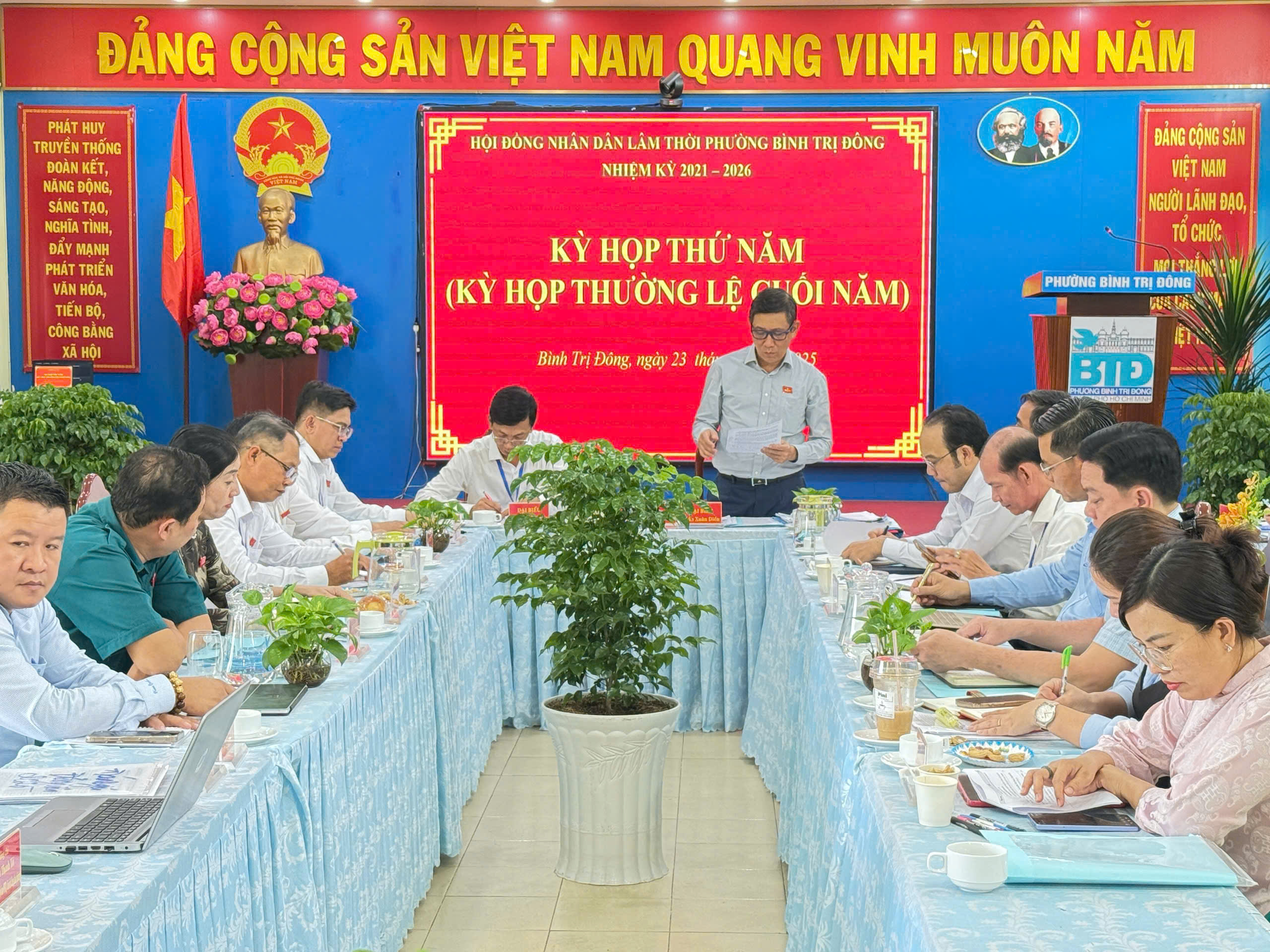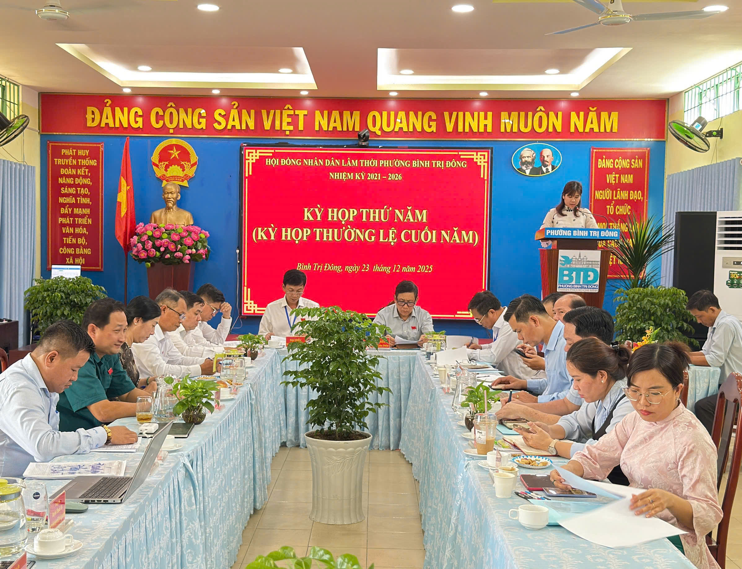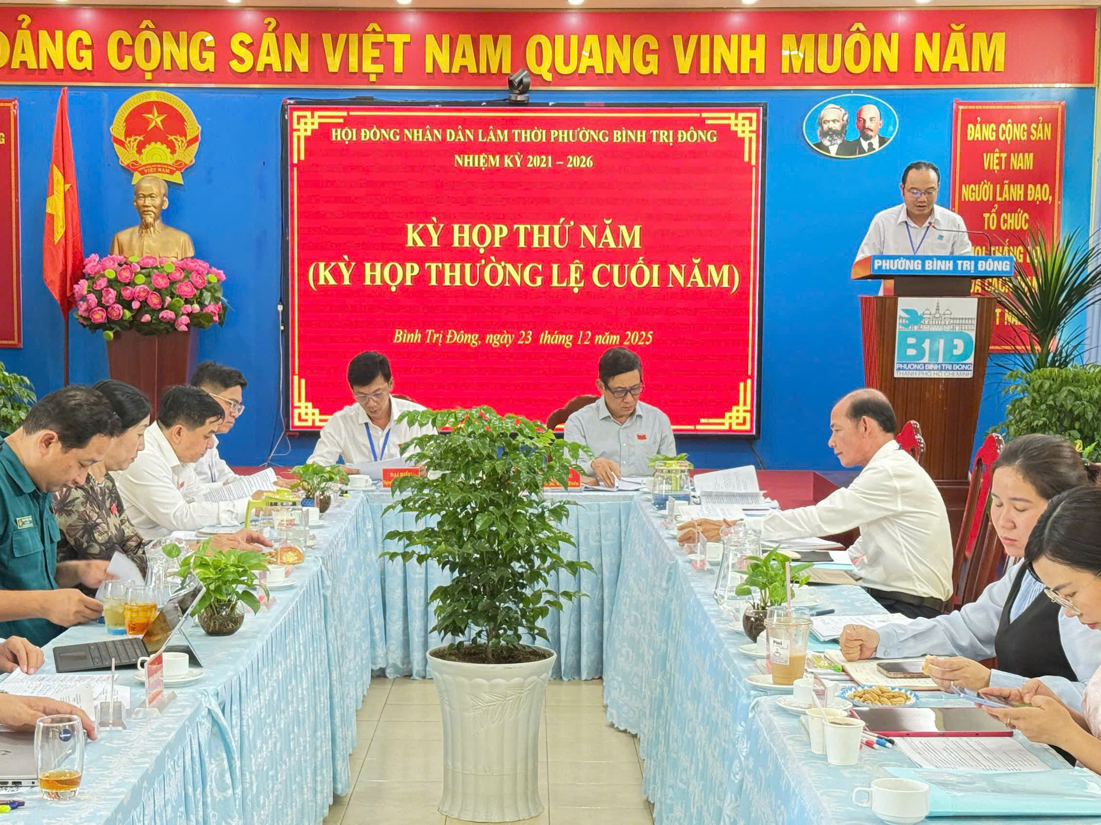 Ngày 23 tháng 12 năm 2025, Hội đồng nhân dân lâm thời phường Bình Trị Đông, nhiệm kỳ 2021 - 2026 đã tổ chức Kỳ họp thứ Năm - phiên họp thường lệ cuối năm 2025.
