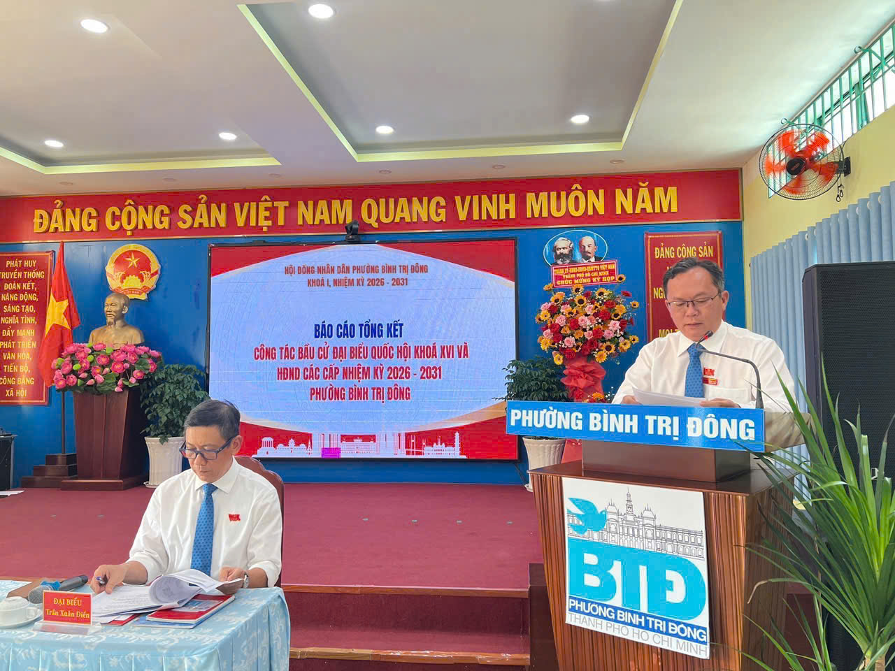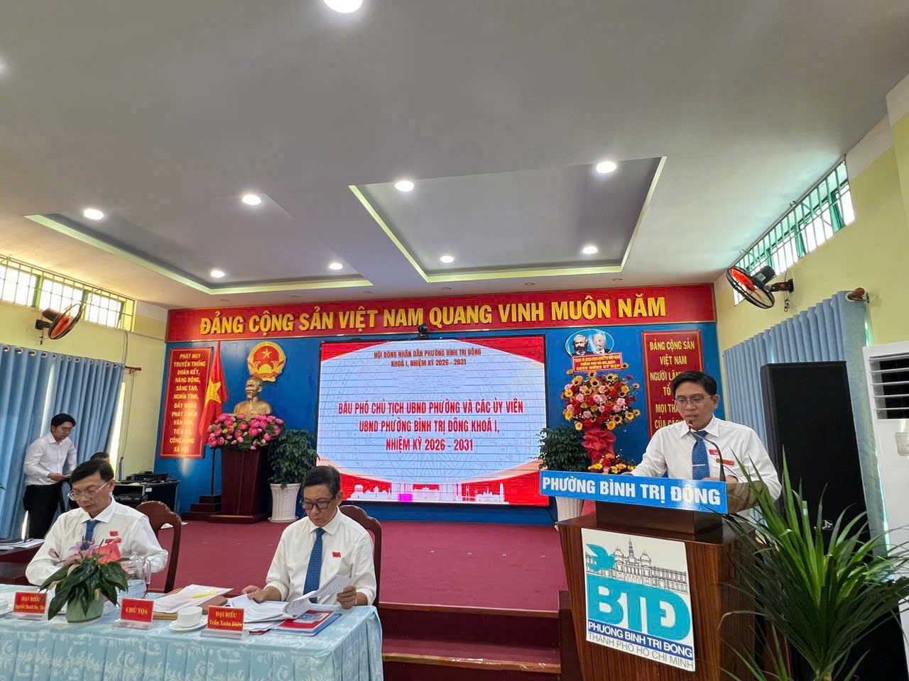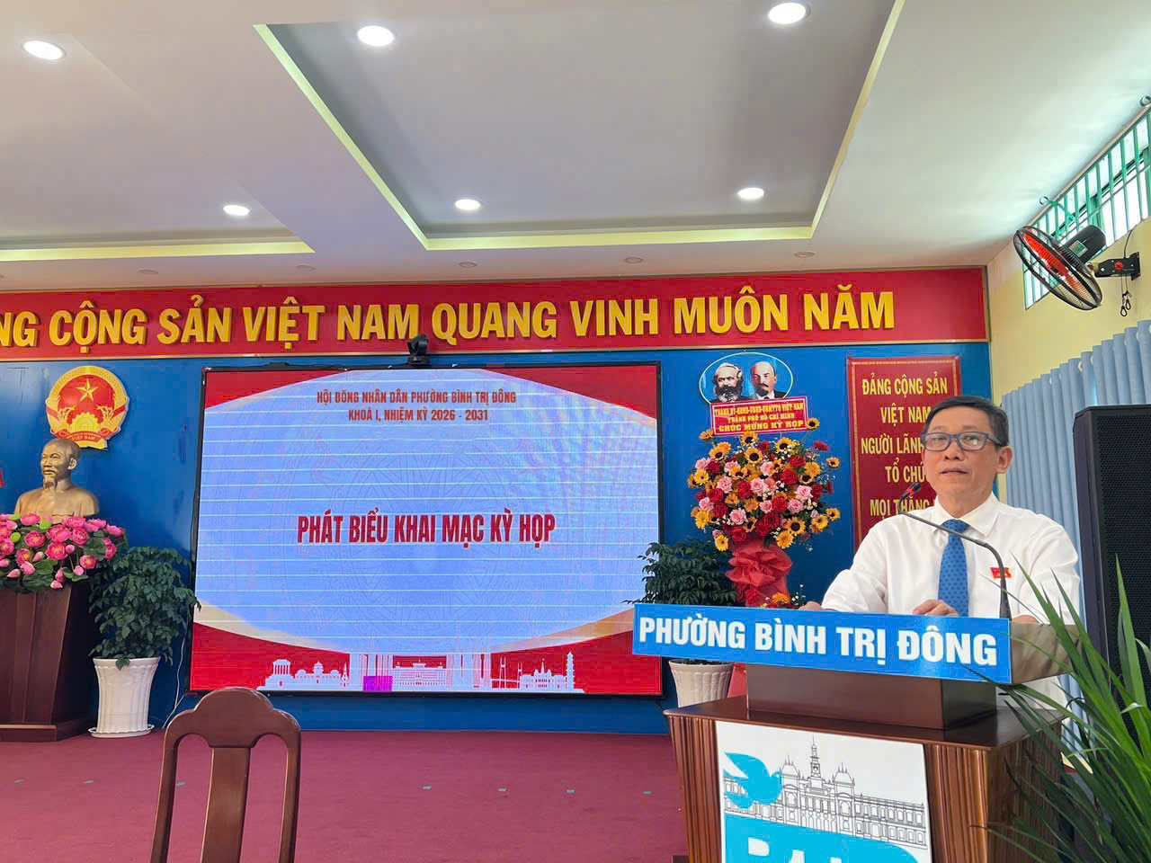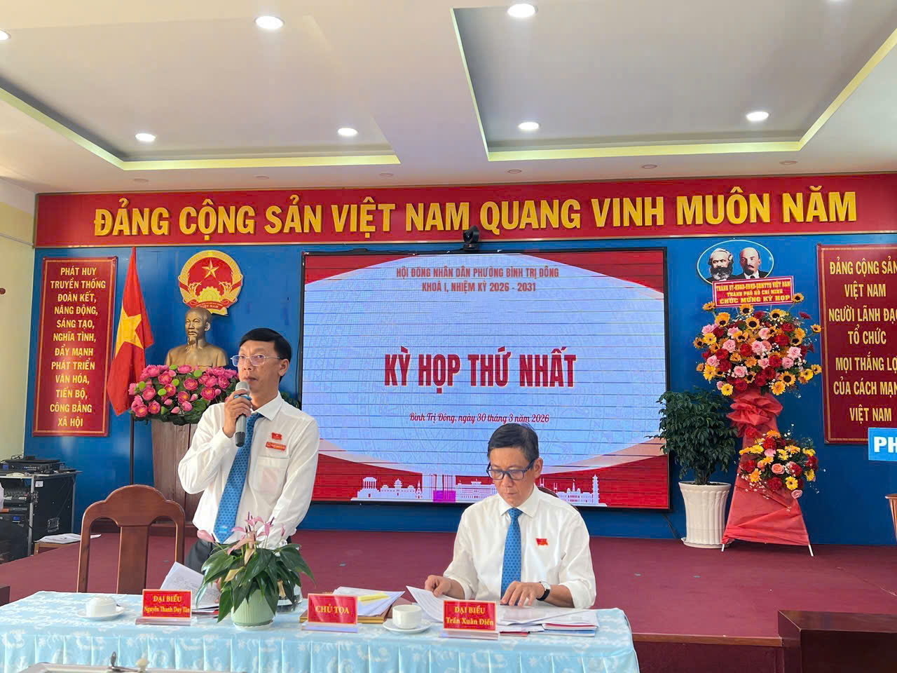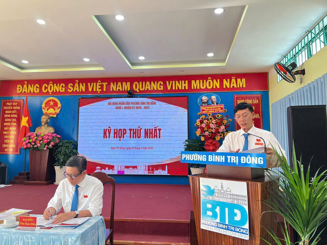 Chiều ngày 30/3, Hội đồng nhân dân (HĐND) phường Bình Trị Đông khóa I, nhiệm kỳ 2026-2031 tổ chức Kỳ họp thứ nhất nhằm kiện toàn tổ chức bộ máy chính quyền địa phương sau cuộc bầu cử đại biểu Quốc hội khóa XVI và đại biểu HĐND các cấp nhiệm kỳ 2026-2031.