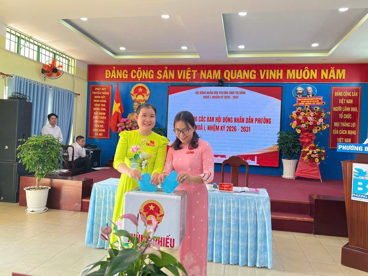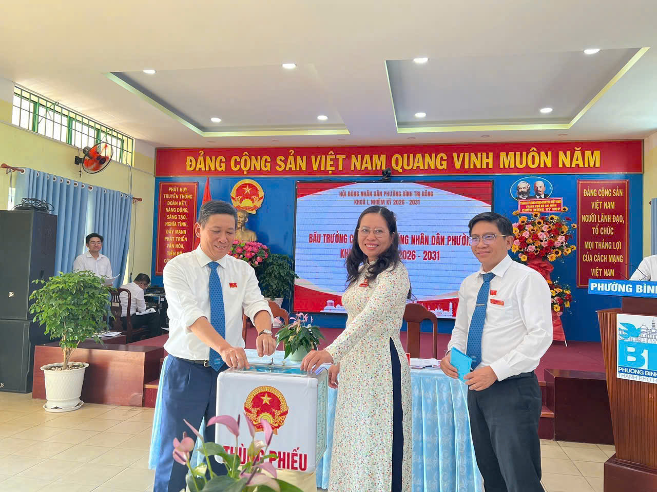 Đồng chí Trần Xuân Điền, Bí thư Đảng ủy, Chủ tịch HĐND lâm thời phường được bầu giữ chức vụ Chủ tịch HĐND phường; đồng chí Nguyễn Thanh Duy Tân, Phó Chủ tịch HĐND lâm thời phường giữ chức vụ Phó Chủ tịch HĐND phường nhiệm kỳ 2026-2031. Đồng chí Nguyễn Hữu Phúc, Ủy viên ban Thường vụ, Chủ nhiệm Ủy ban kiểm tra Đảng ủy được bầu giữ chức vụ Trưởng ban Kinh tế - Ngân sách HĐND phường; đồng chí Phan Văn Hai, Ủy viên Ban thường vụ Đảng ủy, Trưởng Ban xây dựng Đảng được bầu giữ chức vụ Trưởng ban Văn hóa - Xã hội HĐND khóa I, nhiệm kỳ 2026-2031.