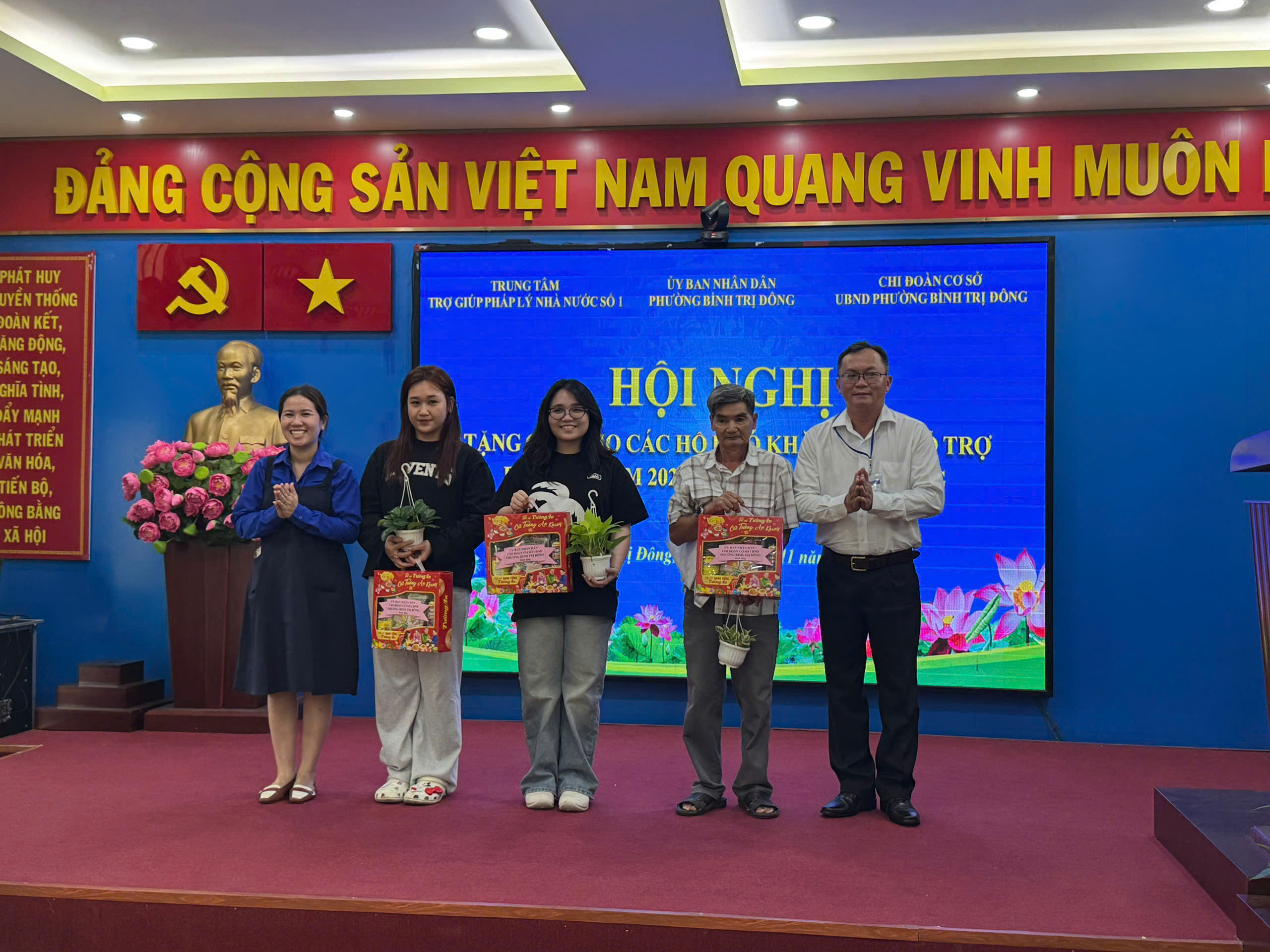 Nhân dịp này UBND phường Bình Trị Đông đã trao tặng quà cho các hộ dân có hoàn cảnh khó khăn được hỗ trợ tham gia chương trình trợ giúp pháp lý và Chi đoàn cơ sở UBND phường cũng đã trao tặng 100 cây xanh cho đại biểu tham gia buổi tuyên truyền nhằm hưởng ứng phong trào “Phường xanh, sạch, thân thiện môi trường” – góp phần lan tỏa thông điệp sống xanh, xây dựng không gian đô thị văn minh, bền vững và thân thiện với thiên nhiên.