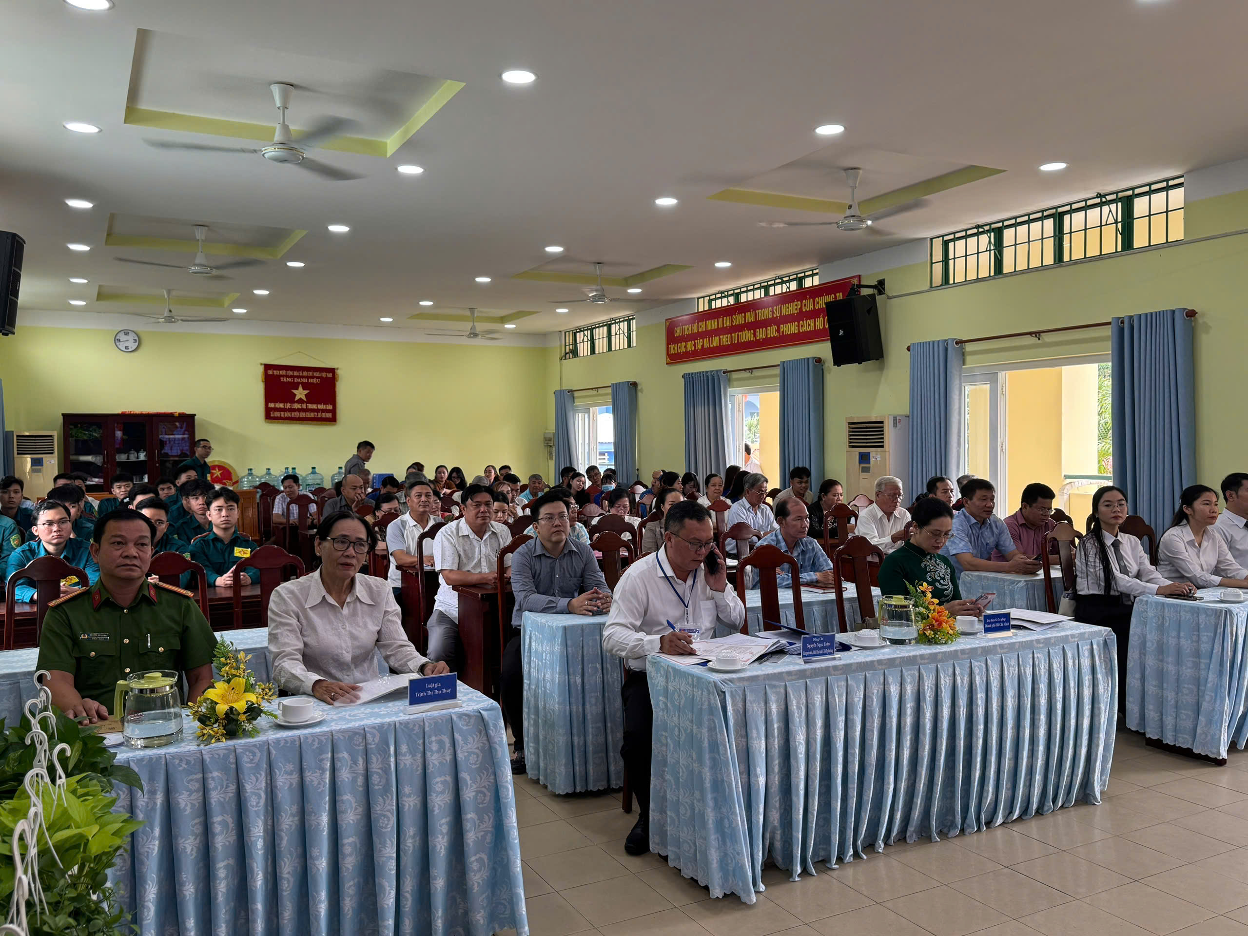 Tham dự hội nghị có đại diện Sở Tư pháp Thành phố Hồ Chí Minh, Trung tâm Trợ giúp pháp lý Nhà nước số 1, lãnh đạo UBND phường, Ban Văn hóa - Xã hội Hội đồng nhân dân lâm thời phường, các phòng chuyên môn, Công an phường, trưởng, phó 77 khu phố, hòa giải viên cơ sở, tuyên truyền viên pháp luật, đoàn viên, hội viên, dân quân thường trực và đông đảo nhân dân trên địa bàn.