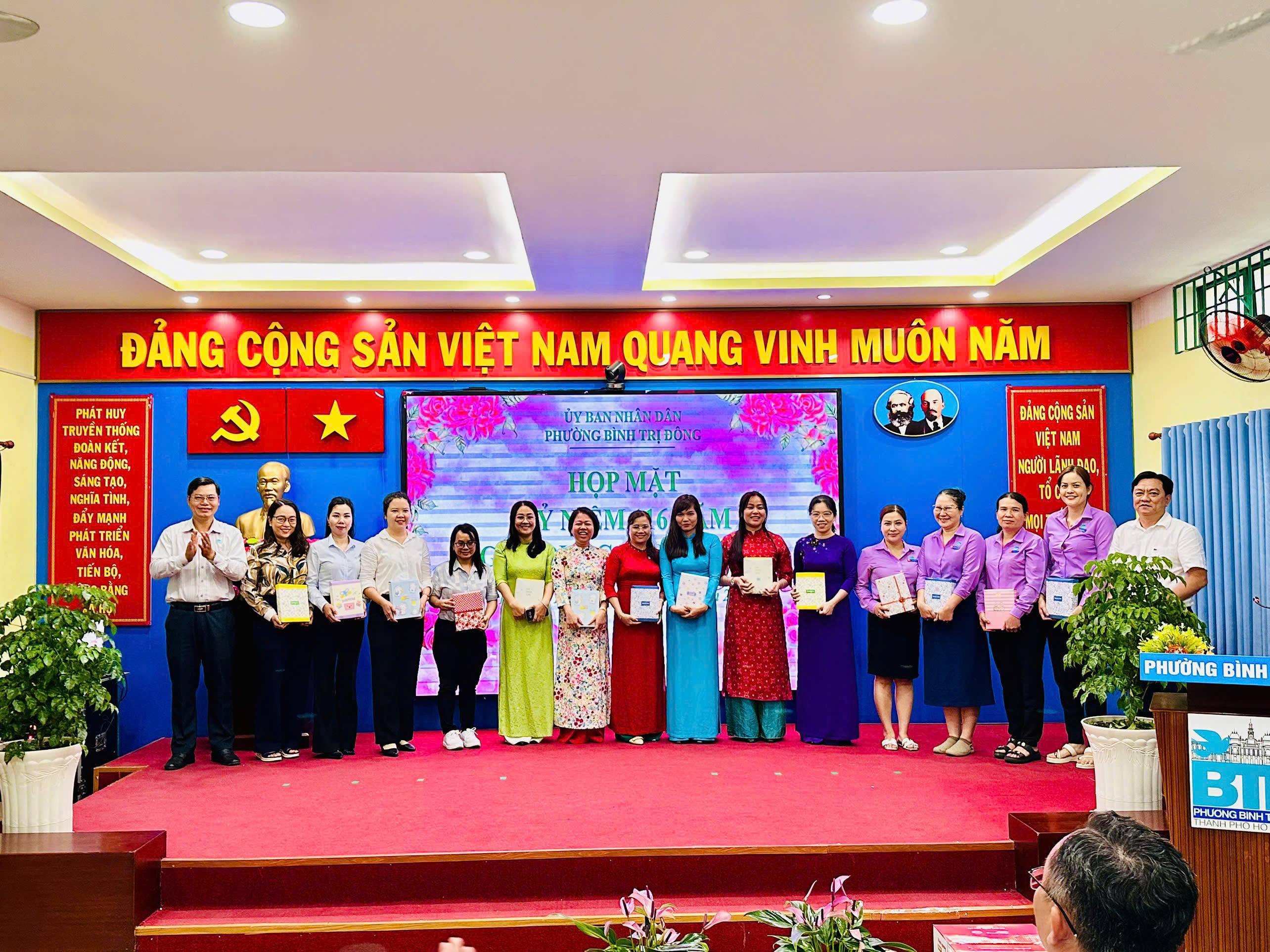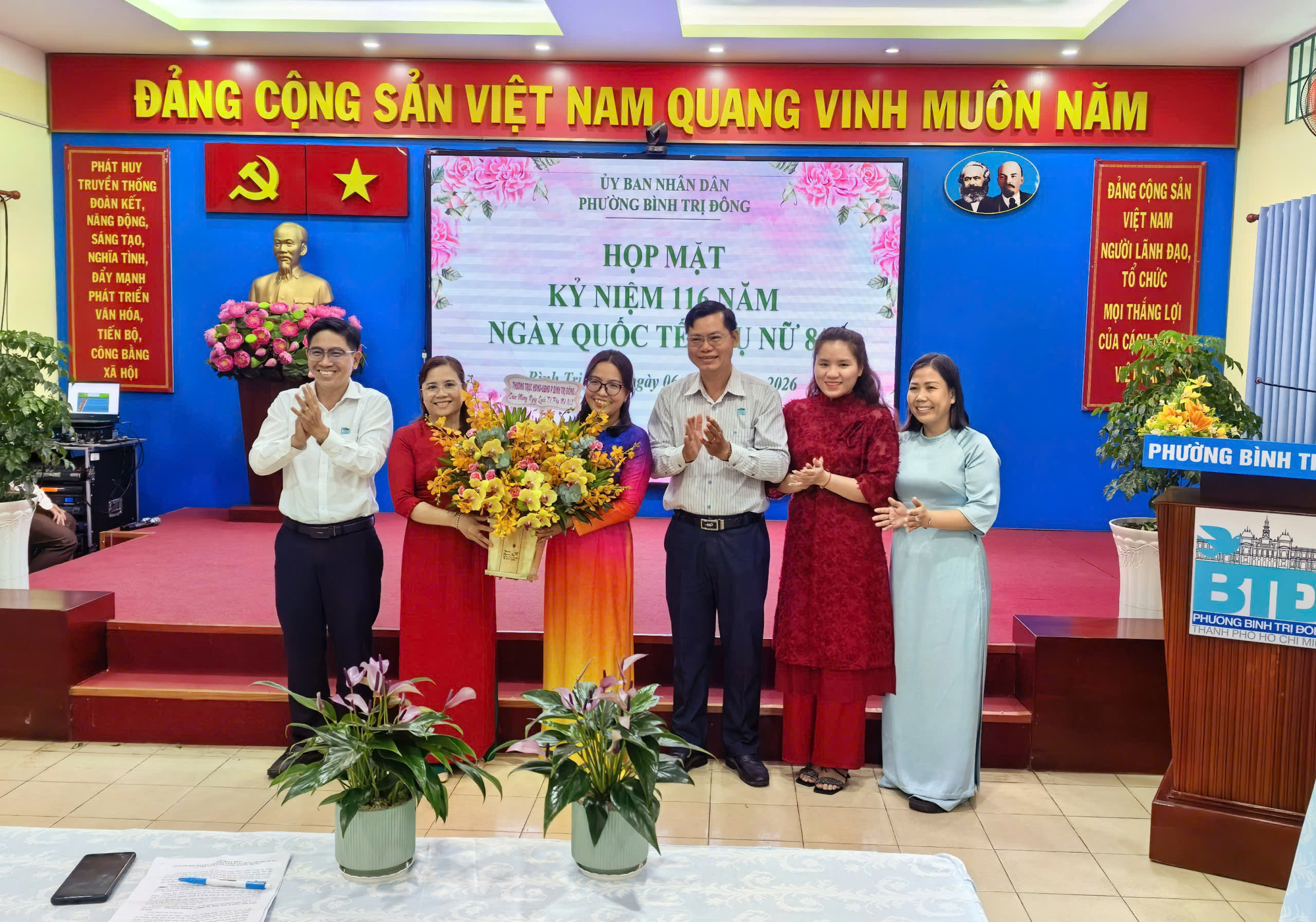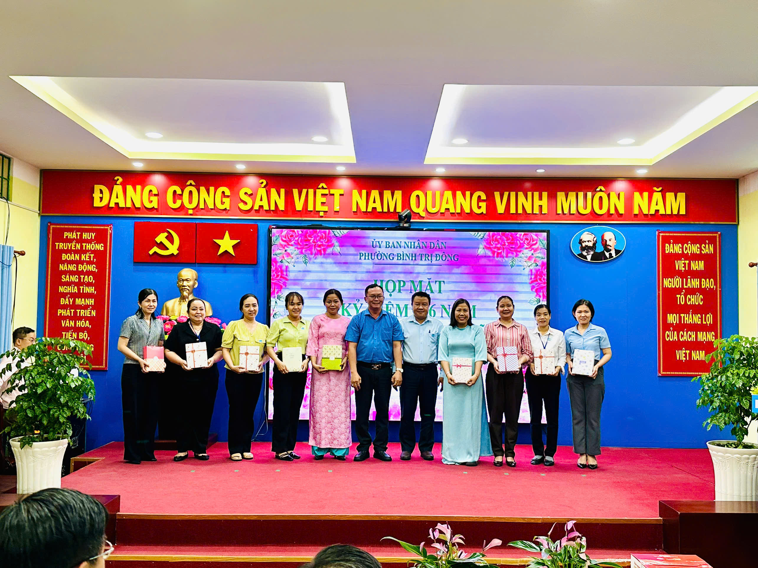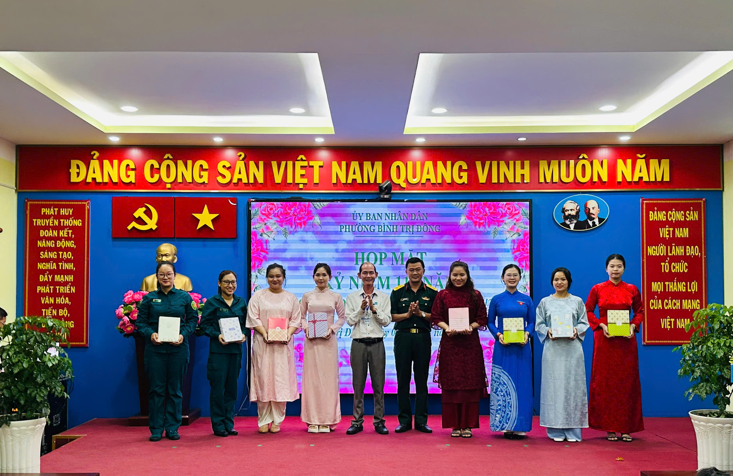 Chiều ngày 06/3/2026, Ủy ban nhân dân phường đã tổ chức buổi họp mặt kỷ niệm Ngày Quốc tế Phụ nữ 8/3 trong không khí ấm áp, đoàn kết. Chương trình có sự tham dự của Thường trực UBND phường, Lãnh đạo các ban Hội đồng nhân dân lâm thời, các cơ quan chuyên môn, Trung tâm Phục vụ hành chính công, Ban Chỉ huy Quân sự phường cùng đông đảo cán bộ, công chức, người hoạt động không chuyên trách phường.