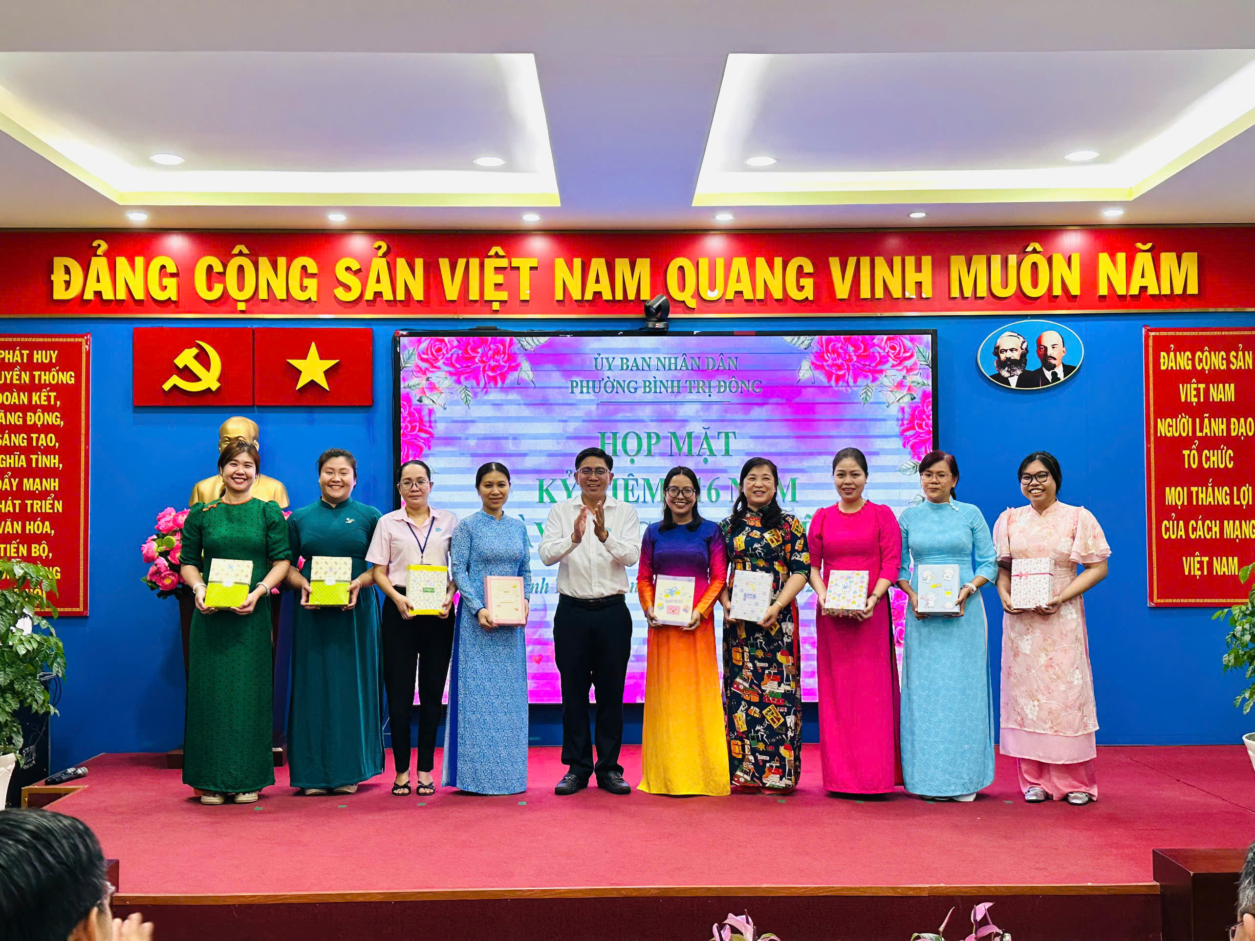 Phát biểu tại buổi họp mặt, Phó Bí thư Đảng ủy, Bí thư Đảng ủy UBND, Chủ tịch UBND phường Bùi Thanh Hoài gửi lời chúc mừng tốt đẹp nhất đến toàn thể chị em phụ nữ cơ quan, đồng thời ghi nhận những đóng góp quan trọng của phụ nữ trong công tác chuyên môn, hoạt động phong trào và xây dựng đời sống văn hóa tại địa phương. Những nỗ lực bền bỉ của chị em đã góp phần tạo nên diện mạo phát triển tích cực của phường trong thời gian qua.