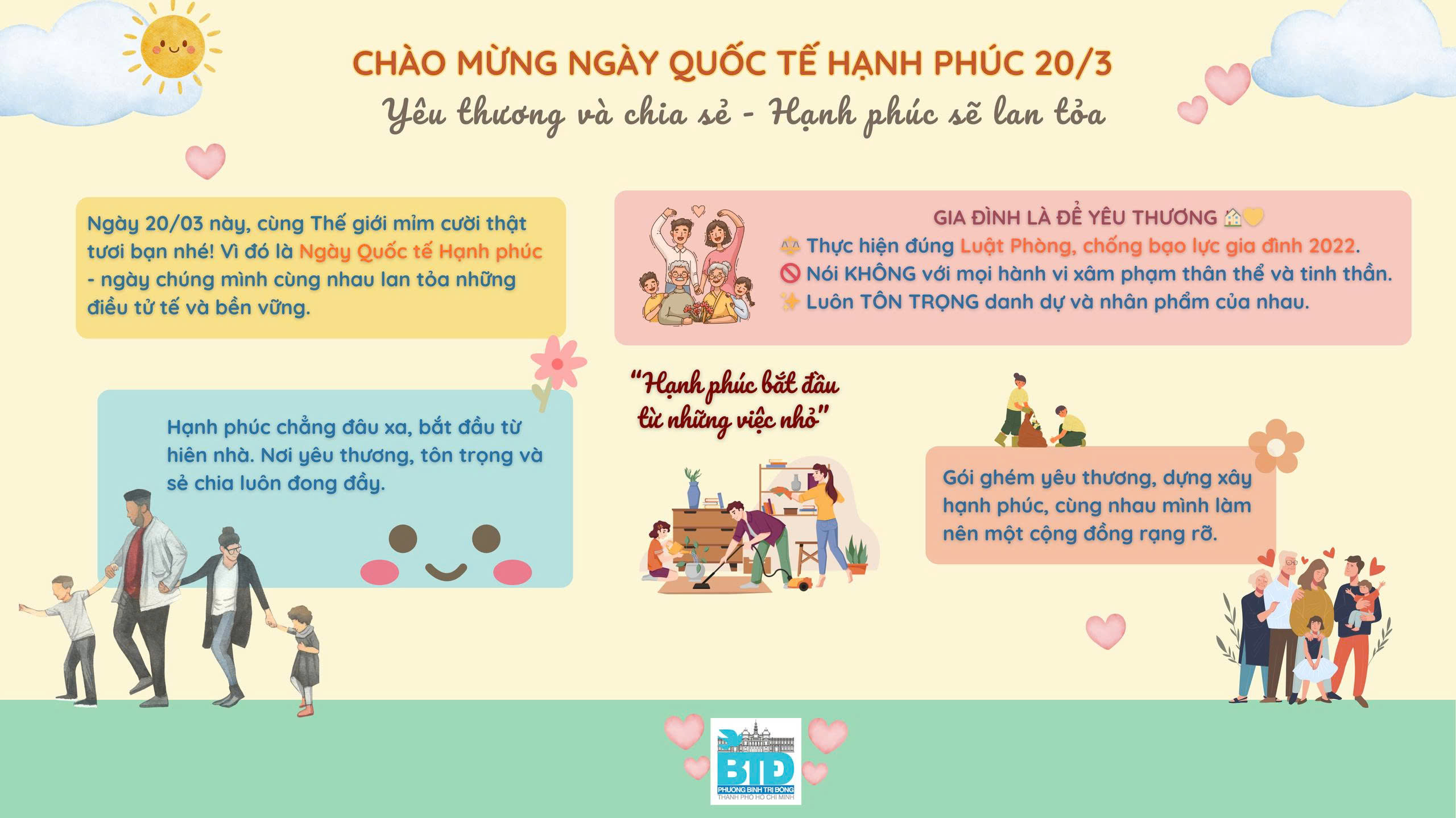 Hưởng ứng Ngày Quốc tế Hạnh phúc, phường Bình Trị Đông kêu gọi mỗi người dân hãy cùng nhau lan tỏa những điều tích cực: